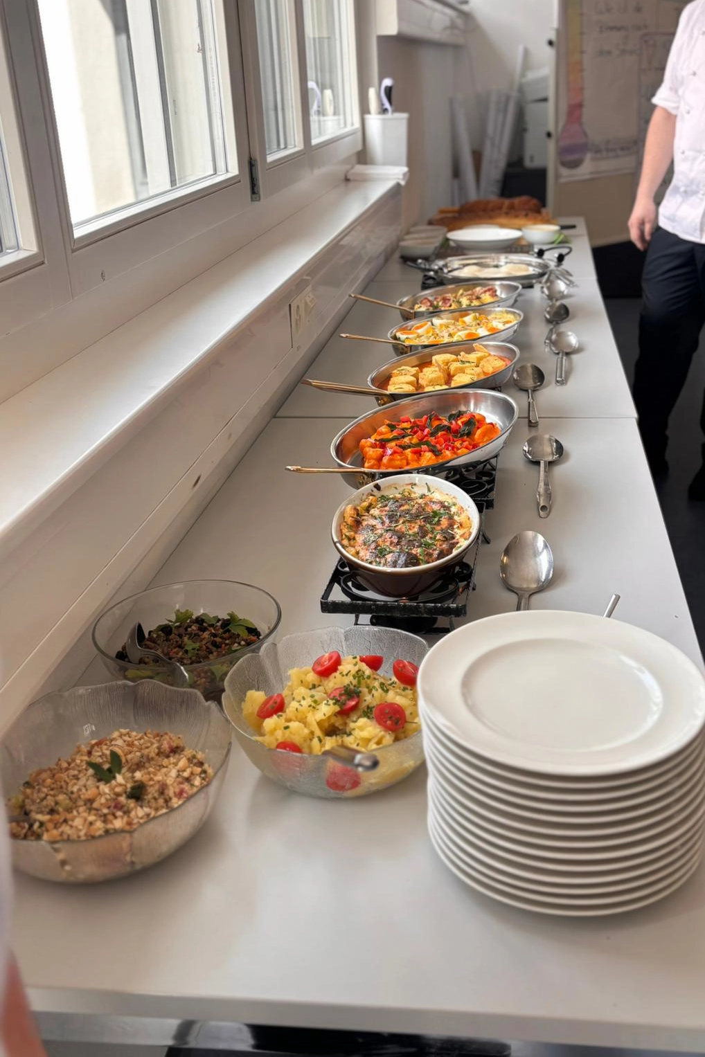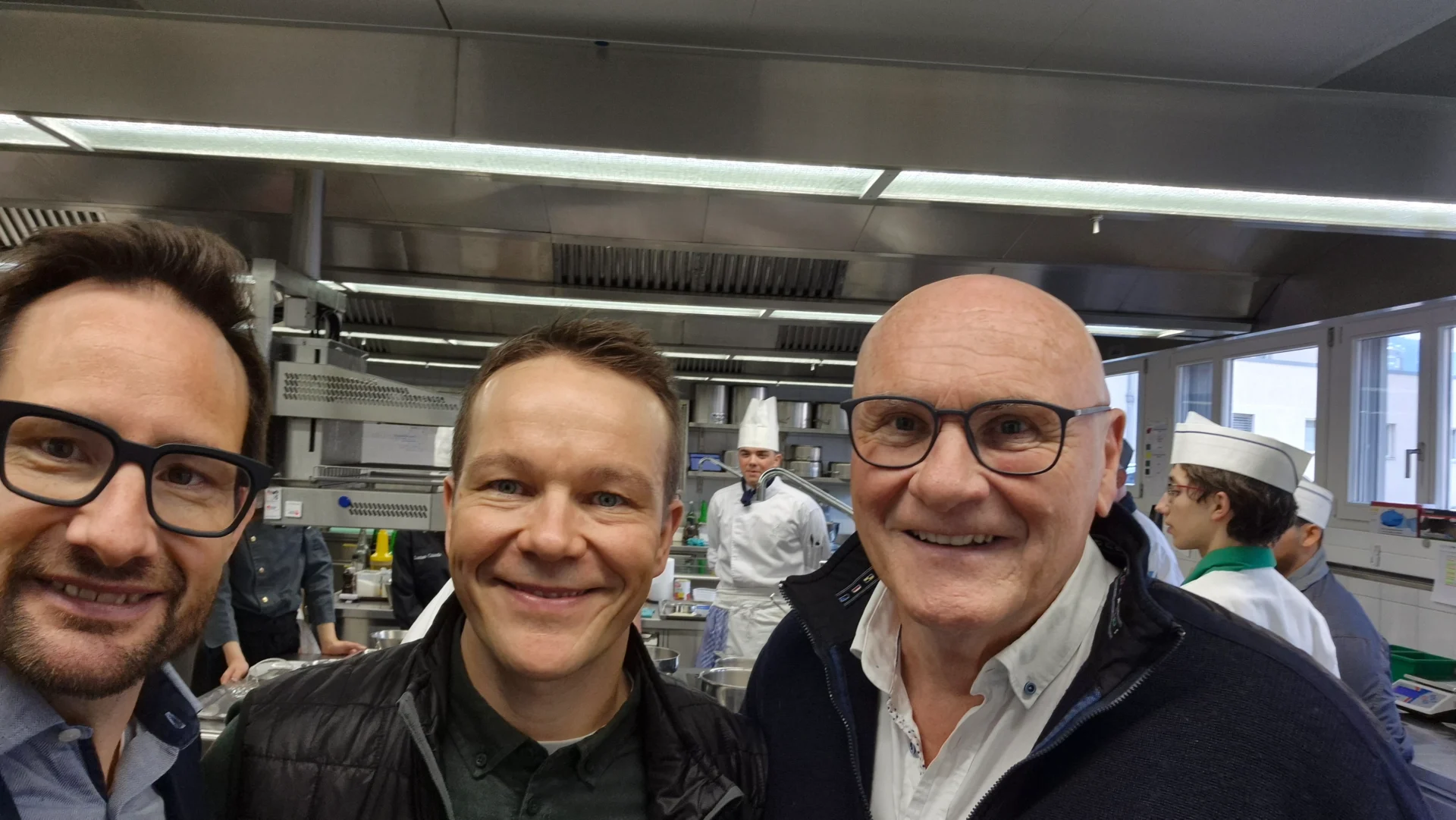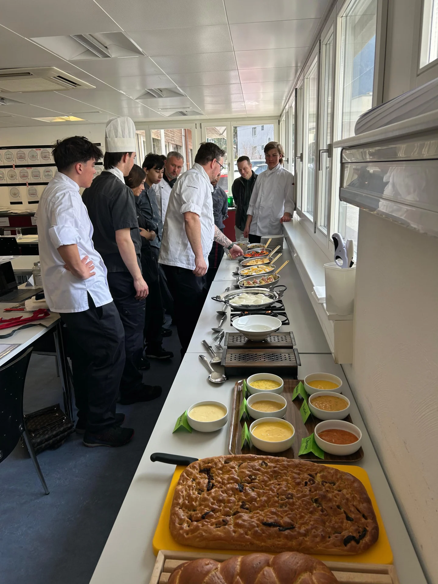 Vor Ort wurden sie von Riccardo Wolf, seit mehreren Jahren üK-Instruktor bei GastroGraubünden, empfangen. Er setzt sich mit grosser Leidenschaft für die Ausbildung der angehenden Köchinnen und Köche ein. Der Besuch ermöglichte es die Lernenden bei ihrer Arbeit zu beobachten und sich mit den Verantwortlichen über die Ausbildung und die aktuellen Entwicklungen im Bereich der Berufsbildung auszutauschen.