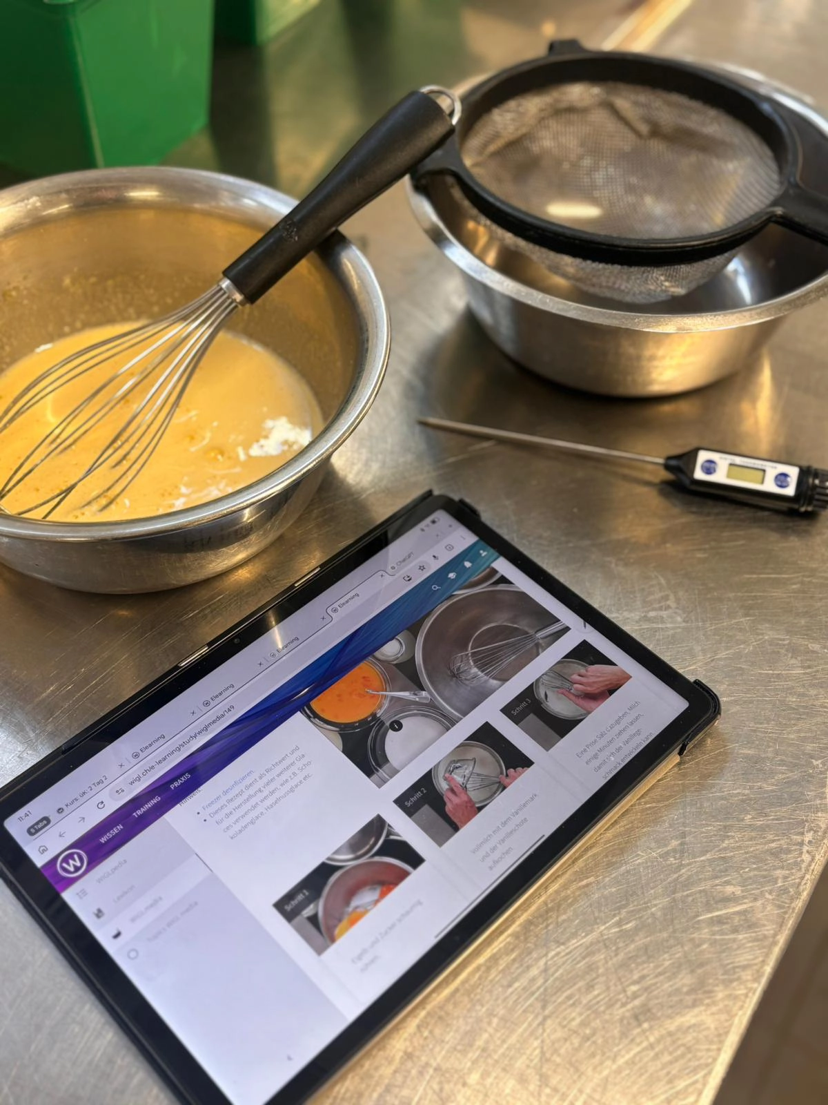 Im üK 2 vertiefen die Lernenden wichtige Grundlagen ihres Berufs und wenden ihr Wissen direkt in der Praxis an. Zu den Themen des Kurses gehörten unter anderem Getreidegerichte, Eiergerichte und Buttersaucen. Die Lernenden wurden von Riccardo Wolf betreut und arbeiteten an unterschiedlichen Gerichten. Dabei konnten sie wertvolle Erfahrungen sammeln, die sie für ihren weiteren Berufsweg nutzen können.